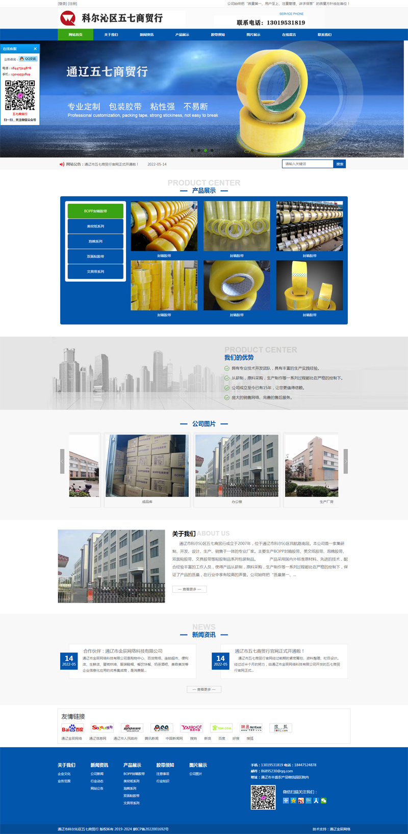 通遼市科爾沁區五七商貿行成立于2007年,位于通遼市科爾沁區民航路南段。本公司是一家集研制、開發、設計、生產、銷售于一體的專業廠家。主要生產BOPP封箱膠帶、美文紙膠帶、泡棉膠帶、雙面粘膠帶、文具膠帶等粘膠制品系列包裝制品。