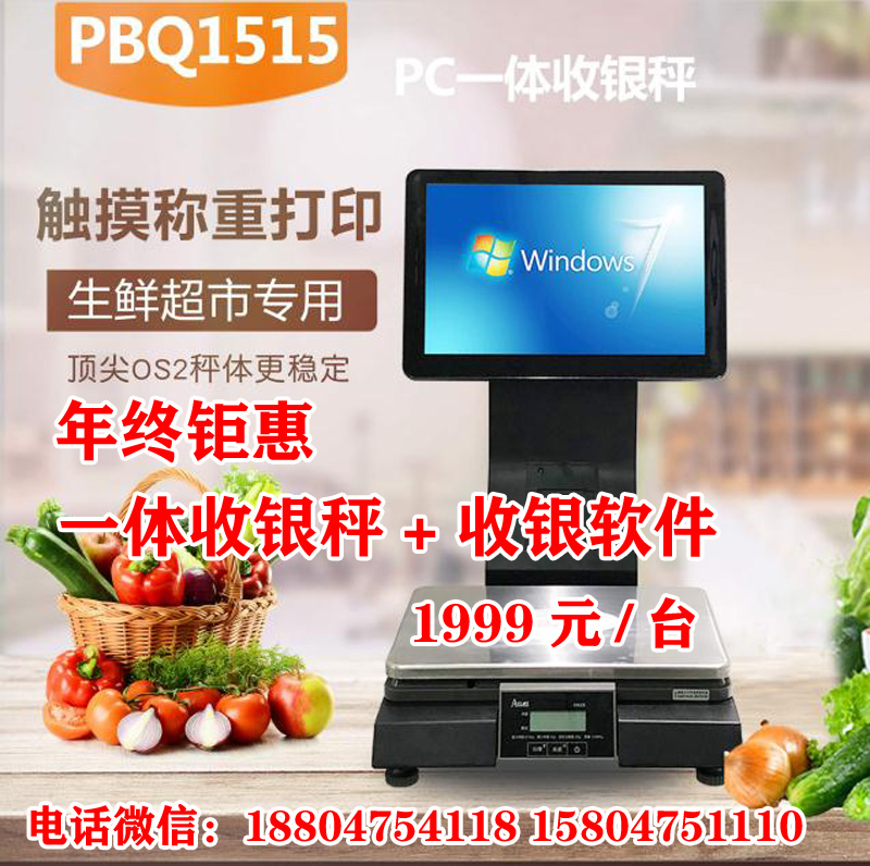 頂尖電子秤、58mm小票打印機、自帶win7操作系統、商超便利店收銀系統