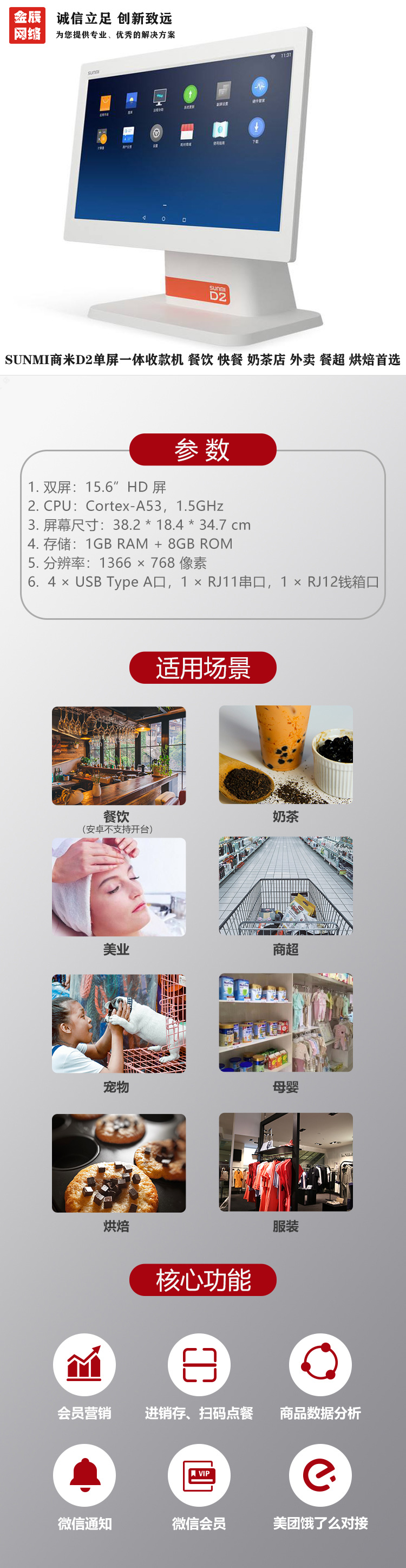 商品名稱:商米D2單屏收款機